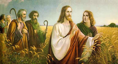 Passava Jesus através das searas num dia de sábado e os discípulos apanhavam e comiam as espigas, debulhando-as com as mãos. Alguns fariseus disseram «Porque fazeis o que não é permitido ao sábado?». Respondeu-lhes Jesus: «Não lestes o que fez David, quando ele e os seus companheiros sentiram fome? Entrou na casa de Deus, tomou e comeu os pães da proposição, que só aos sacerdotes era permitido comer, e também os deu aos companheiros». E acrescentou; «O Filho do homem é senhor do sábado» (Lc 6, 1-5).