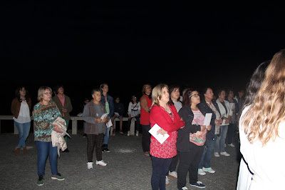 A primeira caminhada está cumprida, com uma boa moldura humana, a caminhar, rezando.