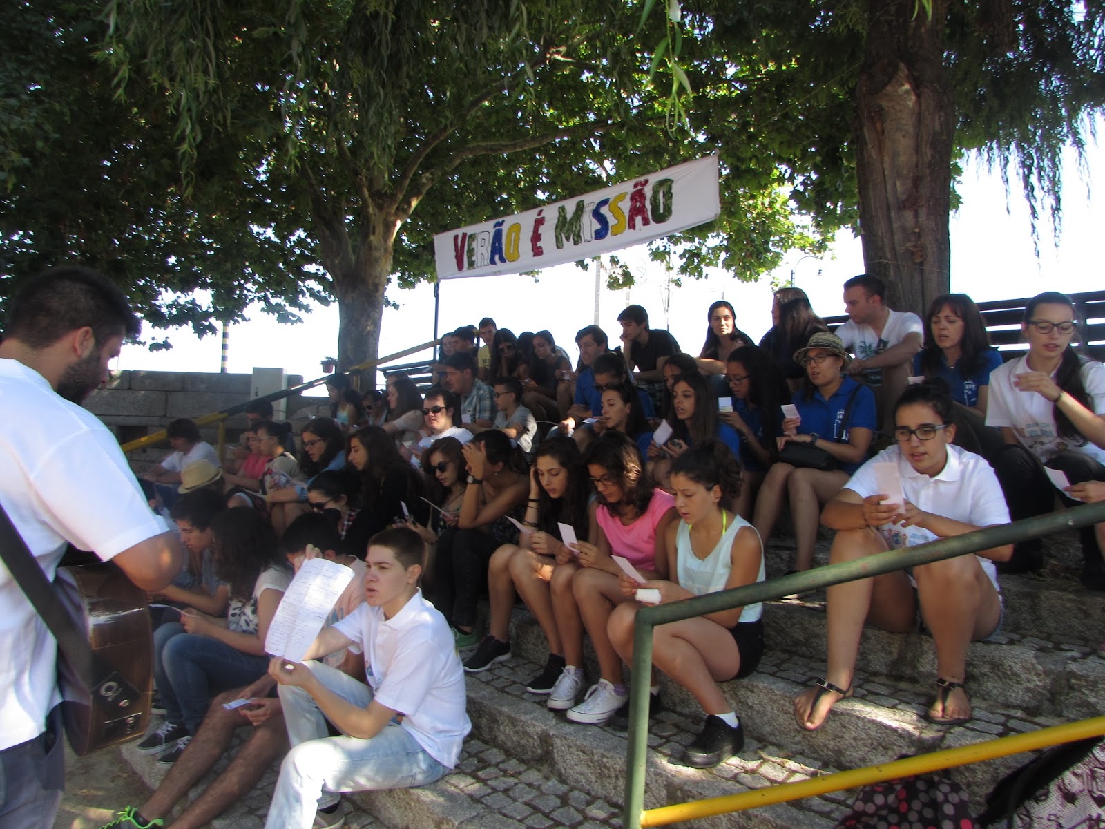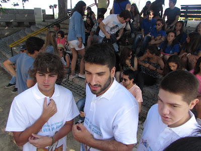 Tivemos ainda a oportunidade, de escutar o testemunho de dois jovens que realizaram uma "ponte" no mês de Agosto em Angola. (Para quem não tem conhecimento do termo, ponte é o nome dado à missão de ir para outro país, durante um determinado tempo, para poder ajudar quem mais precisa, seja a nível de saúde, educação, cidadania, etc). Pessoalmente acho que foi o momento que mais nos tocou no coração. Posso dizer que ao ouvir aqueles dois jovens fiquei com vontade de um dia fazer uma missão do género, pois acho que todos temos o dever de ajudar o próximo, nem que seja apenas ao levar uma palavra de esperança e de fé.