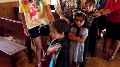 O Jardim Infantil de Pinheiros, e como vem sendo hábito, promoveu a Missa de Finalistas dos seus quatro meninos, na abertura à comunidade e à dimensão espiritual, lembrando que a escola se faz na corresponsabilidade da família e do contexto social envolvente, e promovendo os valores do espírito, a criatividade, a religiosidade, a vida interior, a relação com os outros. Ficam algumas imagens da celebração eucarística e de um farto lanche, em formato de vídeo e com duas belíssimas canções da catequese...