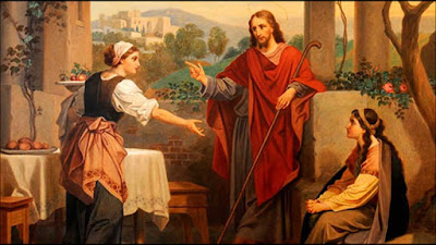 Depois de mais uma jornada, Jesus, com os seus discípulos, entra em determinada povoação e Marta recebe-O em sua casa. Aprendamos com ela a receber Jesus em nossa casa. Mas depois de O acolhermos, é necessário darmos-Lhe atenção. Marta atarefa-se para receber bem. Entretanto vê que a sua irmã está sentada aos pés de Jesus a escutá-l'O. Forma sublime de acolher, com o ouvido, melhor, com o coração!